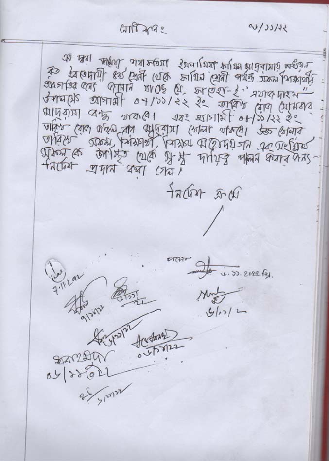 এতদ্বারা জামেয়া শরাফতিয়া ইসলামিয়া ফাযিল মাদরাসার অধ্যয়নরত ইবতেদায়ী ৪র্থ শ্রেণি থেকে ফাযিল শ্রেণি পর্যন্ত সকল শিক্ষার্থীদের অবগতির জন্য জানানো যাচ্ছে যে, ফাতেহা ই-এয়াজদাহম উপলক্ষে আগামী 07/11/2022 ইং তারিখ রোজ সোমবার মাদরাসা বন্ধ থাকবে এবং আগামী ০৮-১১-২০২২ খ্রি. তারিখ রোজ মঙ্গলবার মাদরাসা খোলা থাকবে। উক্ত খোলার তারিখে সকল শিক্ষার্থী, শিক্ষক মহোদয়গণ এবং সংশ্লিষ্ট সকলকে উপস্থিত থেকে স্ব স্ব দায়িত্ব পালন করার জন্য নির্দেশ করা হলো।